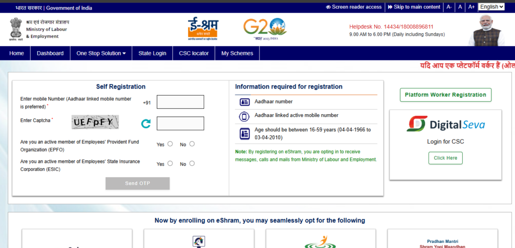 - Step 1. सबसे पहले ऑफिसियल वेबसाइट पे जाये E-Shram Card